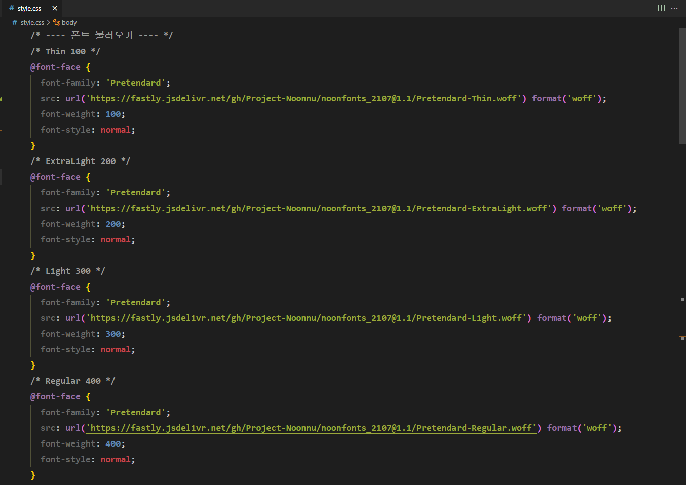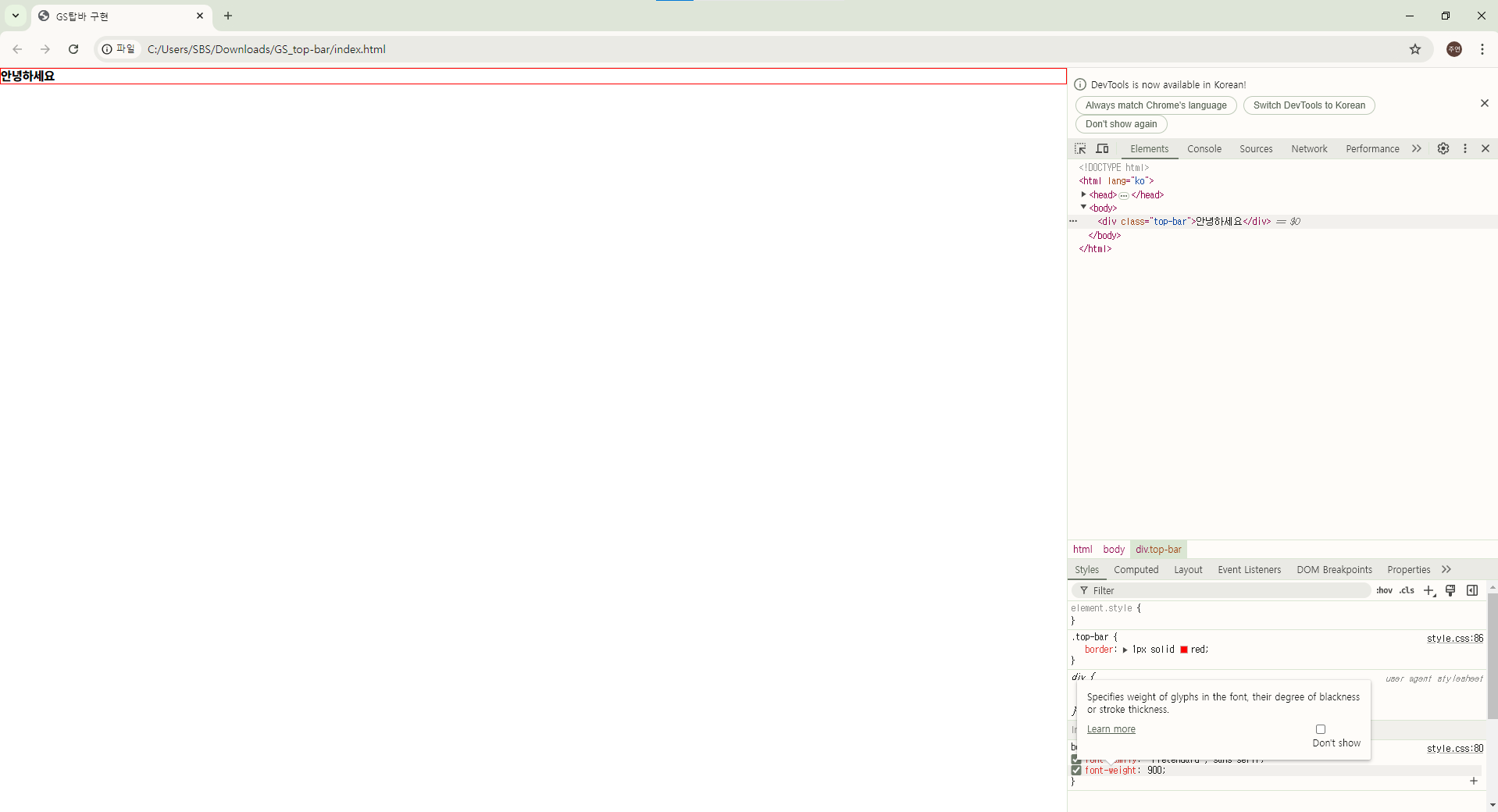 ㄴ 폰트 적용 잘 됐는지 확인(font-weight: 글꼴 두께)
