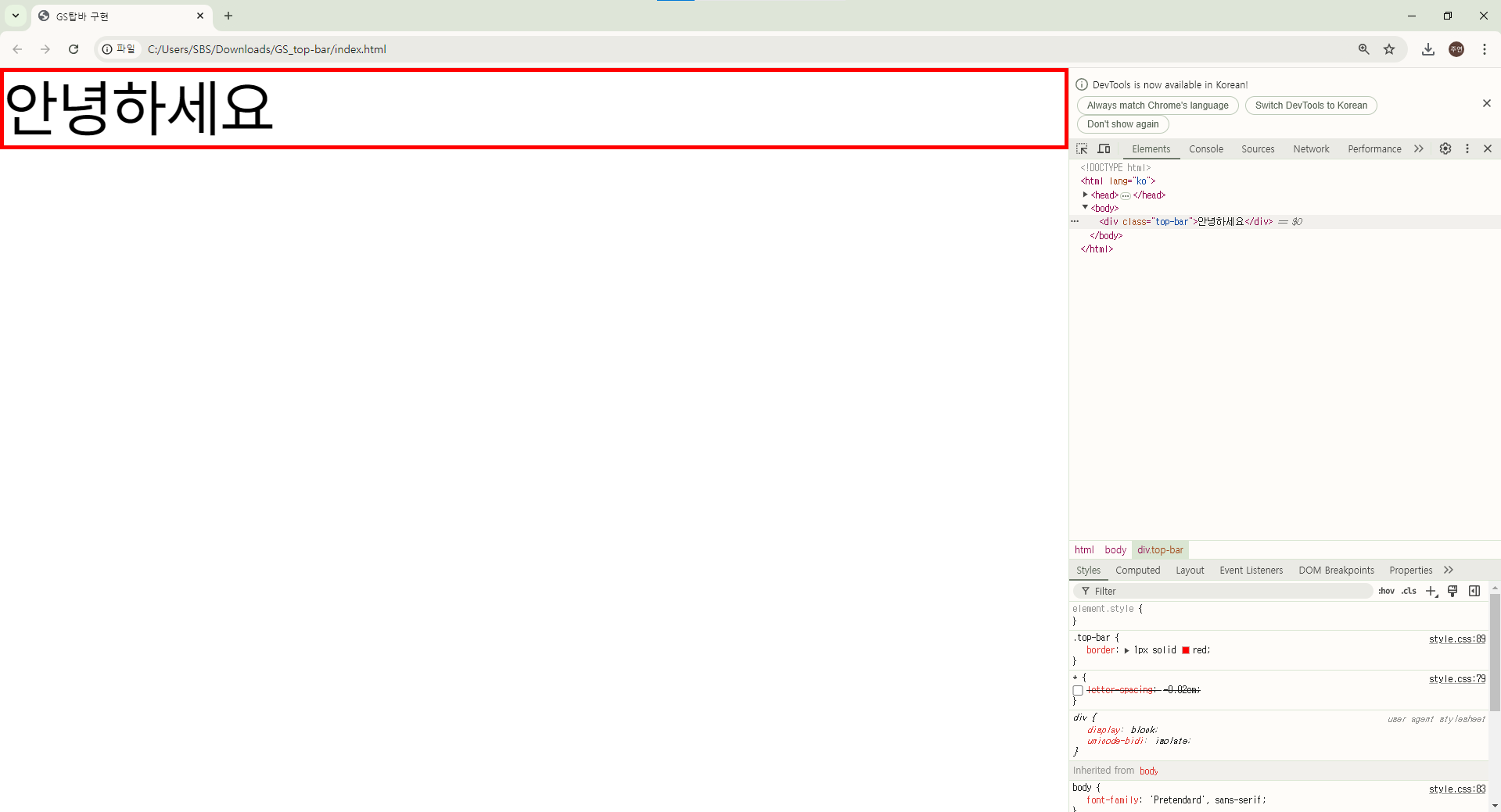 ㄴ개발자 모드(F12) 창을 켜서 적용 잘 됬는지 확인