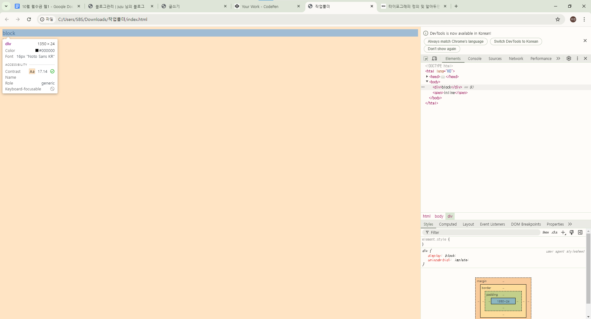 ㄴblock은 display: block;임