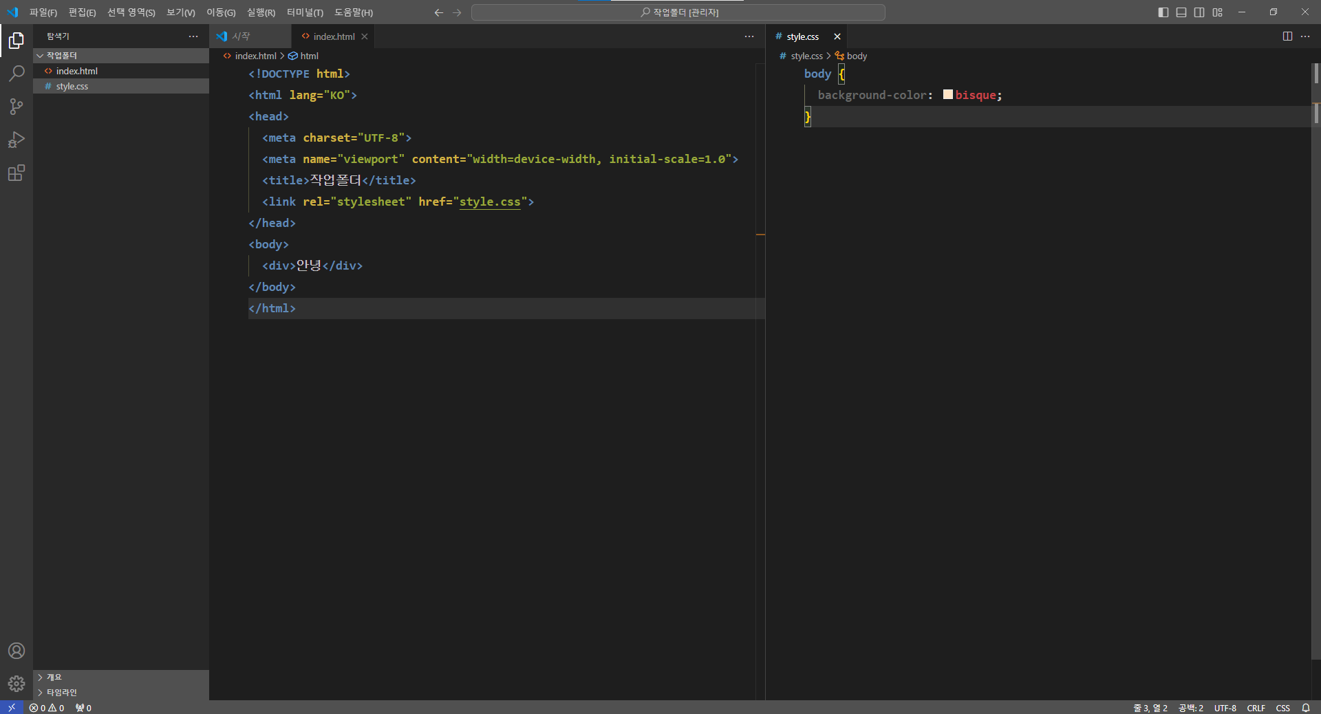 - 폴더를 먼저 열어서 그 안에 파일을 만든다.